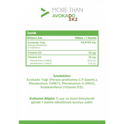More Than Avokado D3K2 D3 ve K2 Vitamini İçeren Takviye Edici Gıda
